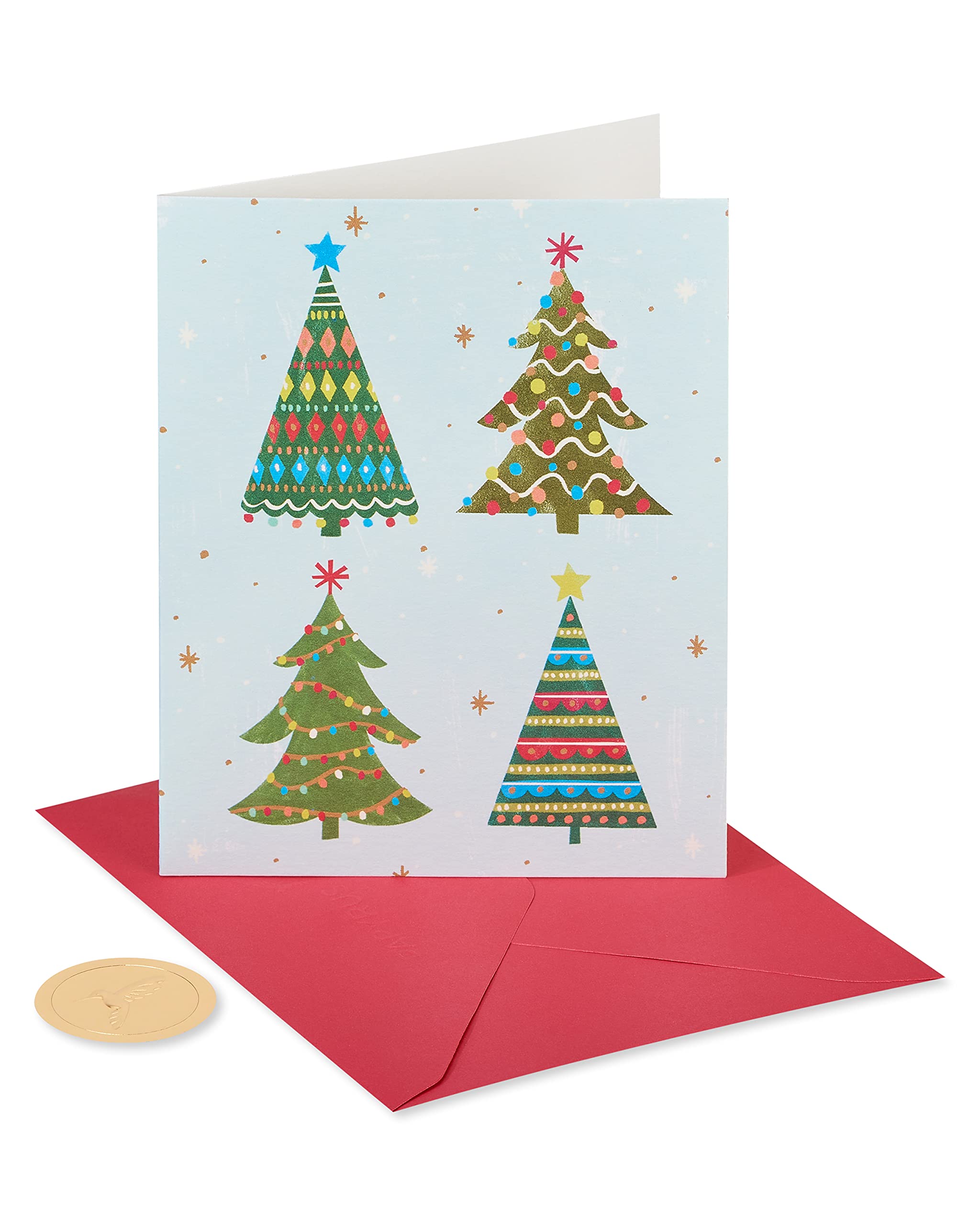 Amazon Com Papyrus Boxed Christmas Cards With Envelopes Merry Christmas And Happy New Year Metallic Trees 12 Count Office Products